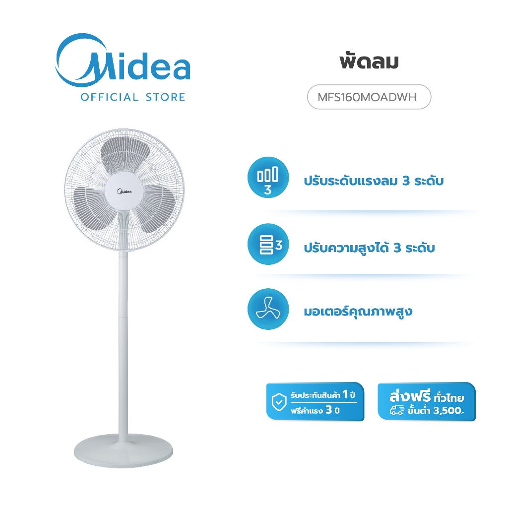 - Midea พัดลมตั้งพื้นไมเดีย 16 นิ้ว รุ่น MFS160M0ADWH