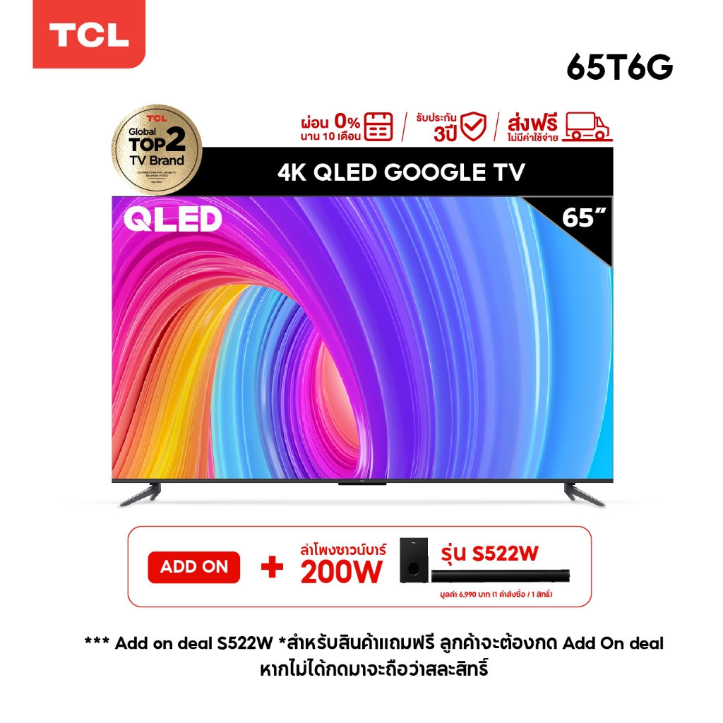 - TCL ทีวี 65 นิ้ว QLED 4K Google TV รุ่น 65T7B