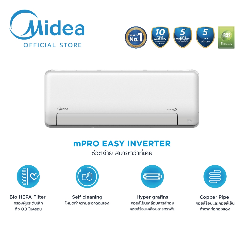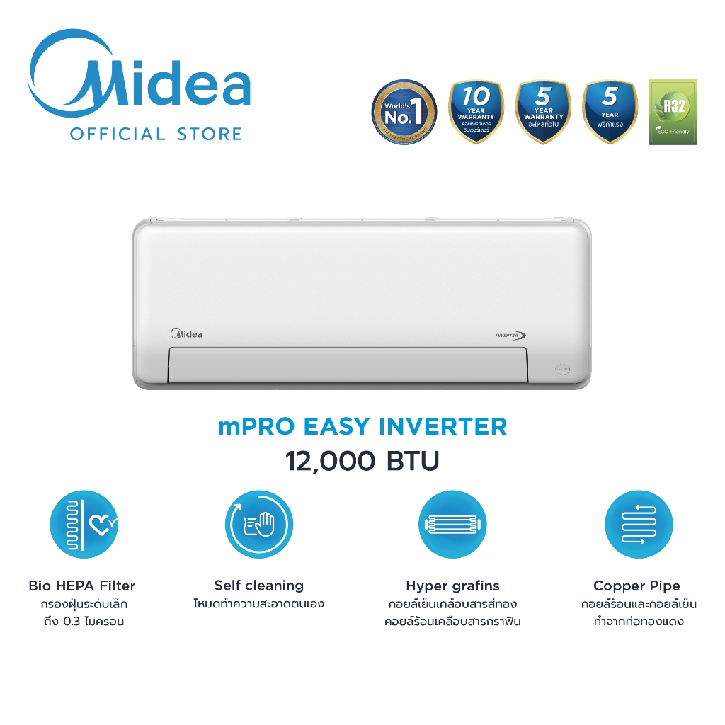 - Midea แอร์ติดผนังไมเดีย Inverter รุ่น mPRO series Inverter 12000 BTU