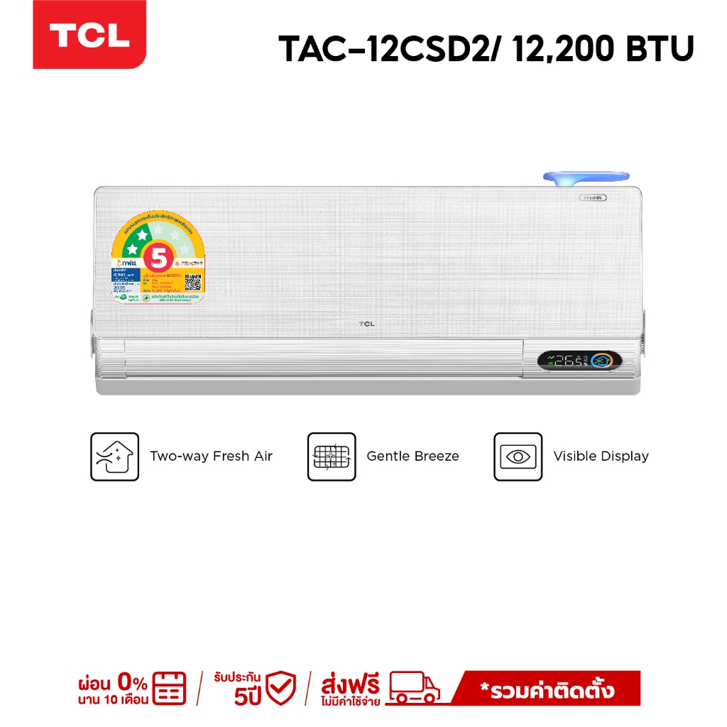 - TCL แอร์ ขนาด 12,200 BTU ระบบ FRESH IN รุ่น TAC-12CSD2