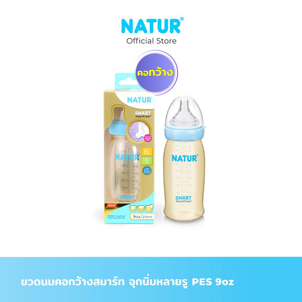 - NATUR ขวดนมสมาร์ทจุกนิ่มหลายรู PES