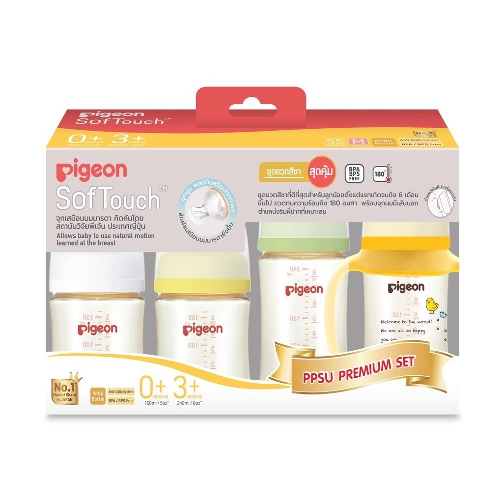 - Pigeon ชุดขวดนม คอกว้าง สีชา PPSU สุดคุ้ม