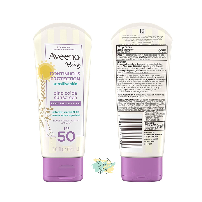 - Aveeno Baby Sunscreen SPF 50 โลชั่นกันแดดสำหรับเด็ก