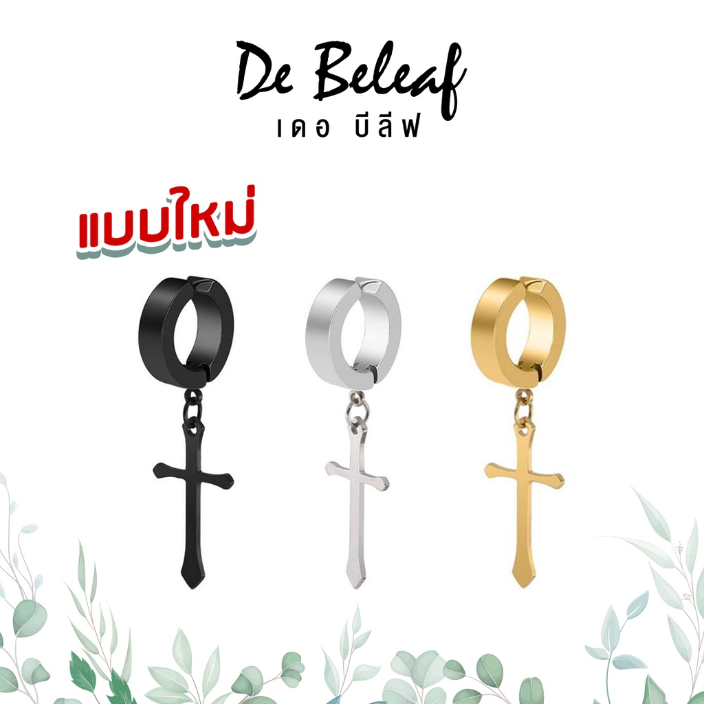 - De Beleaf ต่างหูไม้กางเขนแบบหนีบ สแตนเลสแท้ ไม่เป็นสนิม