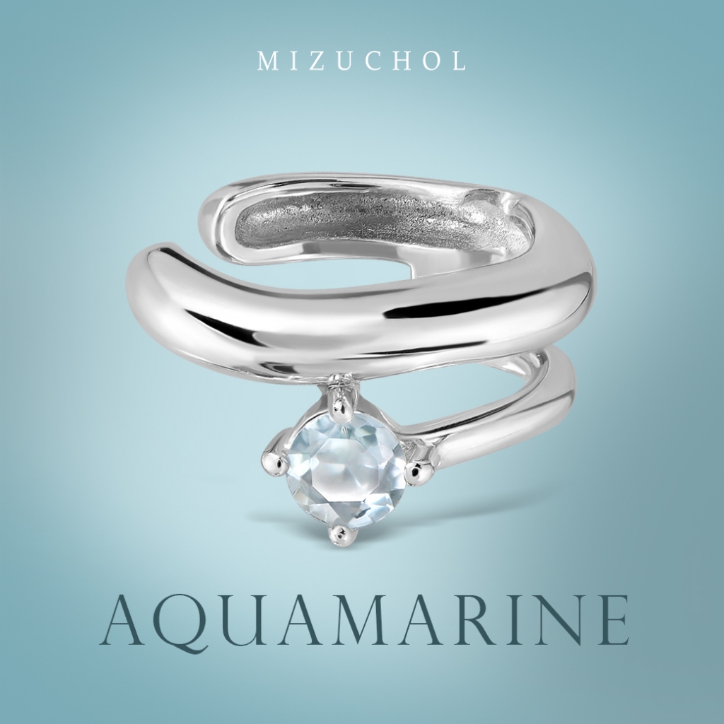 - Mizuchol-ต่างหูหนีบเงินแท้ชุบทองคำขาว Blue Ocean Ear Cuff – พลอย Aquamarine