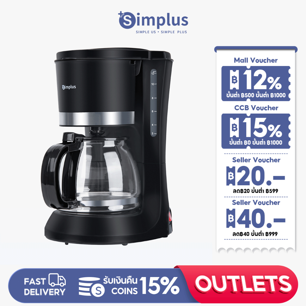 - Simplus เครื่องทำกาแฟ กึ่งอัตโนมัติ KFJH007