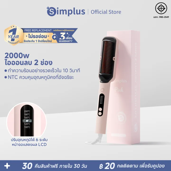 - Simplus หวียืดผมไอออนลบ ม้วนงอผม หวีไฟฟ้า รุ่น ZFSH001