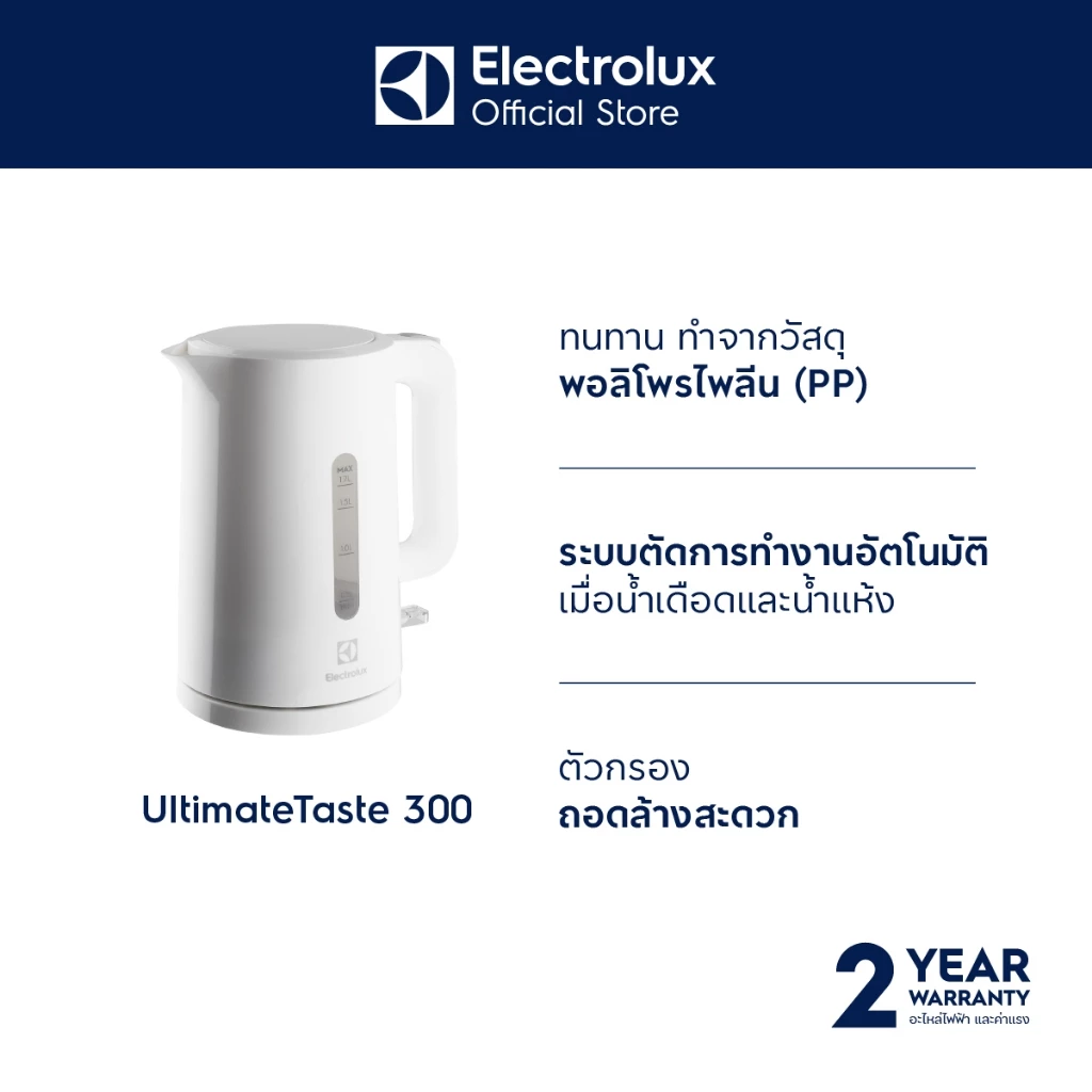 - มาพร้อมระบบตัดไฟอัตโนมัติเมื่อน้ำเดือด ให้คุณมั่นใจถึงความปลอดภัย
