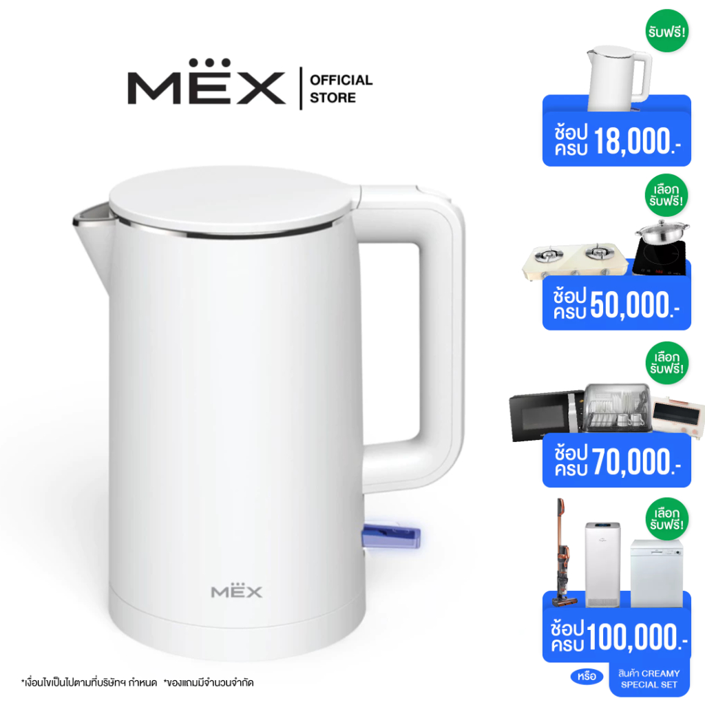 - กำลังไฟ 1800 วัตต์ ความจุ 1.5 ลิตร สีขาวเข้ากับบ้านสมัยใหม่ หรือ ครัวในคอนโด