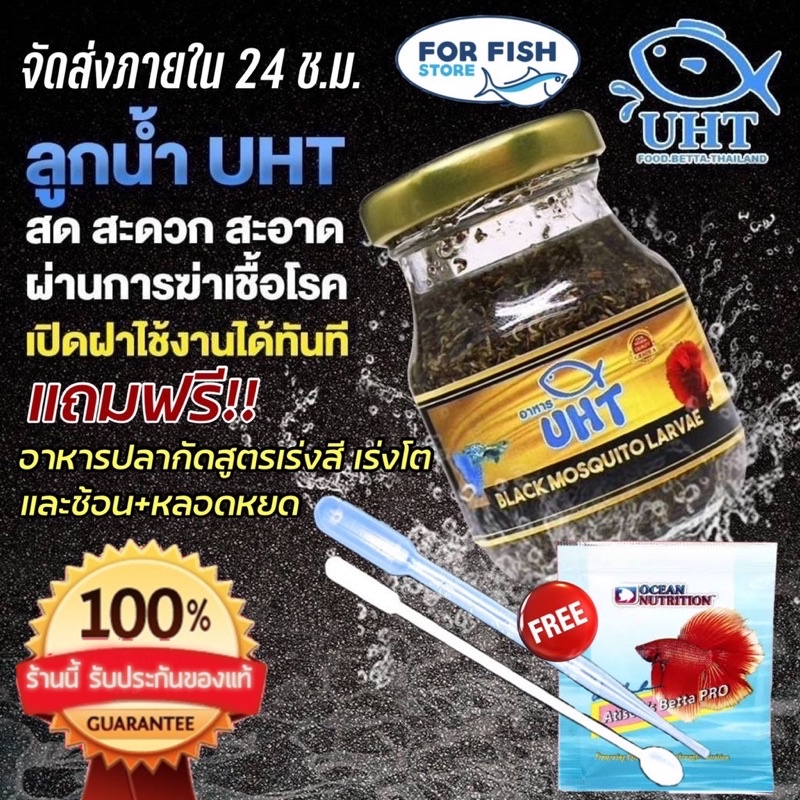 - ผลิตจากลูกน้ำ มีโปรตีนสูง ปลาชอบกิน