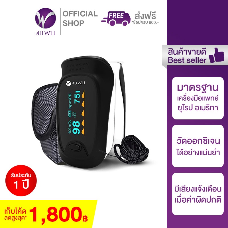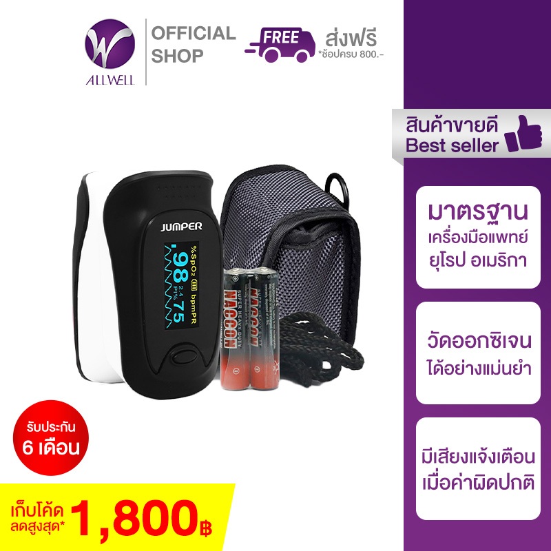 - Allwell เครื่องวัดออกซิเจนปลายนิ้ว รุ่น JPD-500D