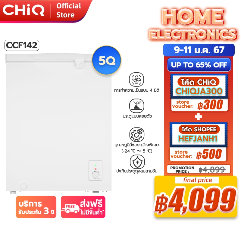 - CHiQ ตู้แช่แข็งแบบเปิดฝาได้ รุ่น CCF142 5Q. 142L
