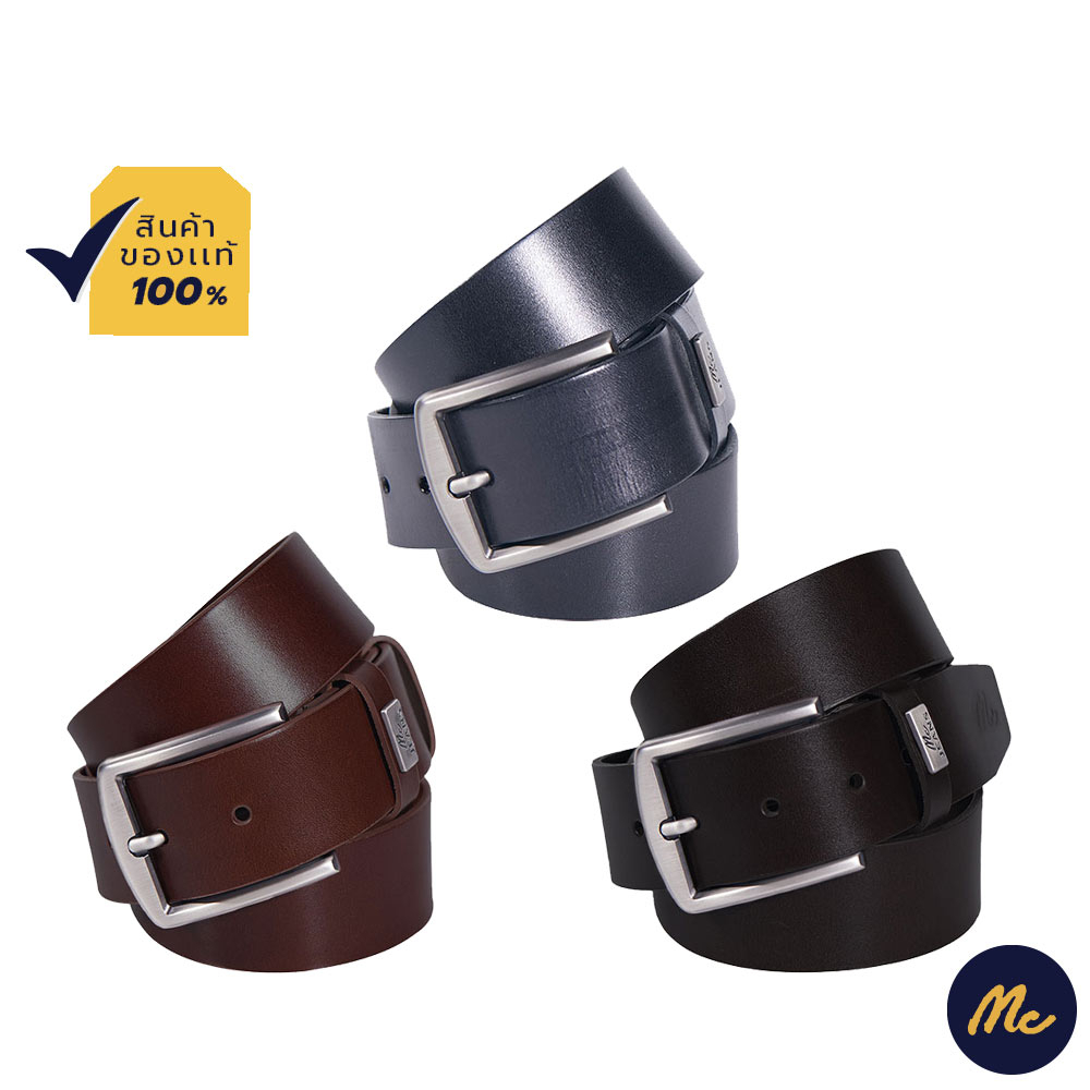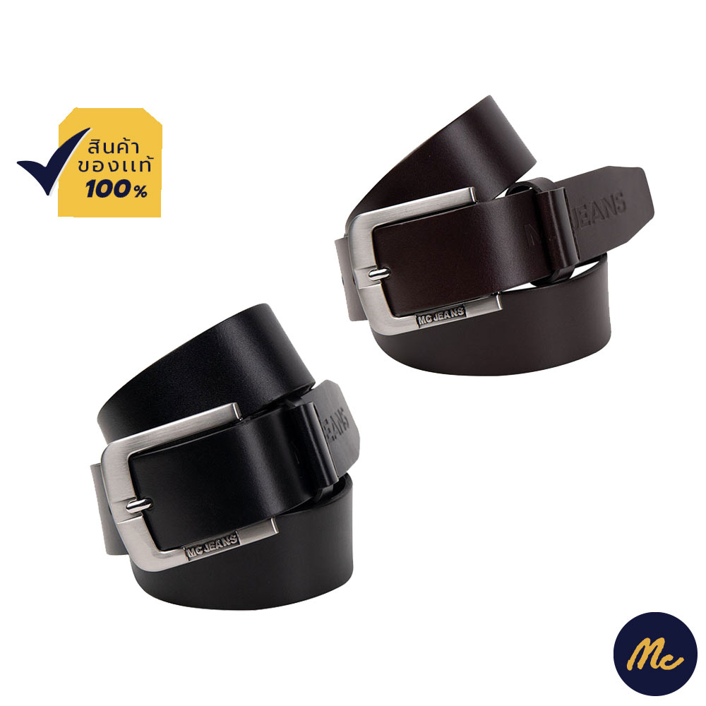 - Mc JEANS เข็มขัดหนังแท้ เข็มขัด mc แท้ เข็มขัดหนังวัว อะไหล่สีเงินรมดำ M08Z012