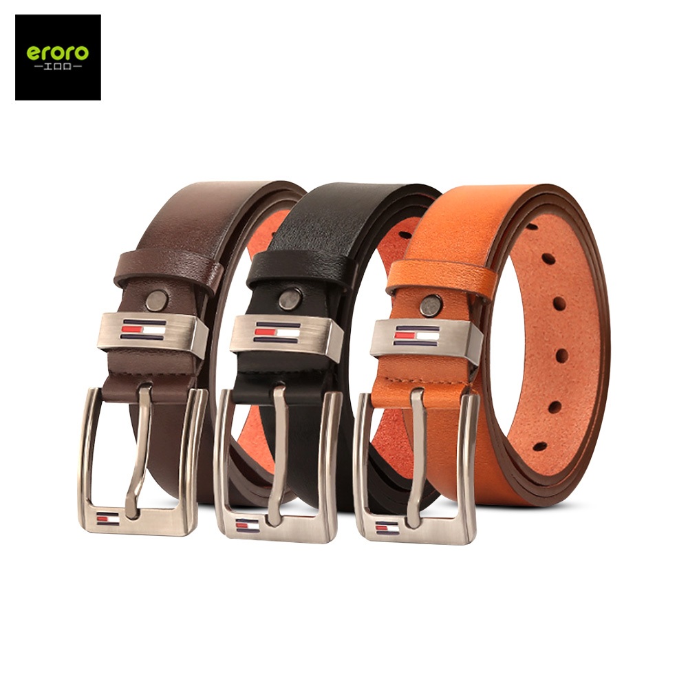 9.ERORO หนังPU เข็มขัดผู้ชาย หัวเข็มขัดปั้มตัวC สวยงาม เข็มขัดหนังแท้100%