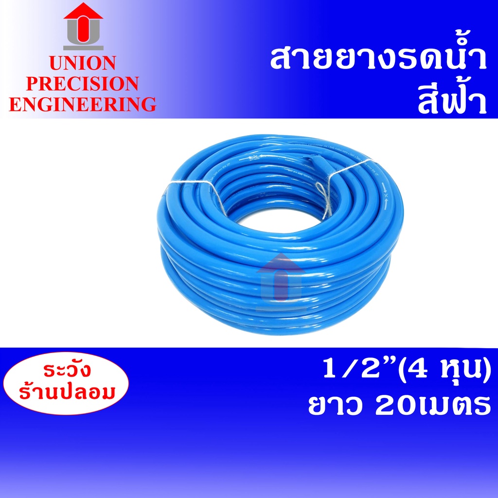 - Union สายยางรดน้ำ 1/2 นิ้ว (4 หุน) ยาว 20 เมตร สีฟ้า