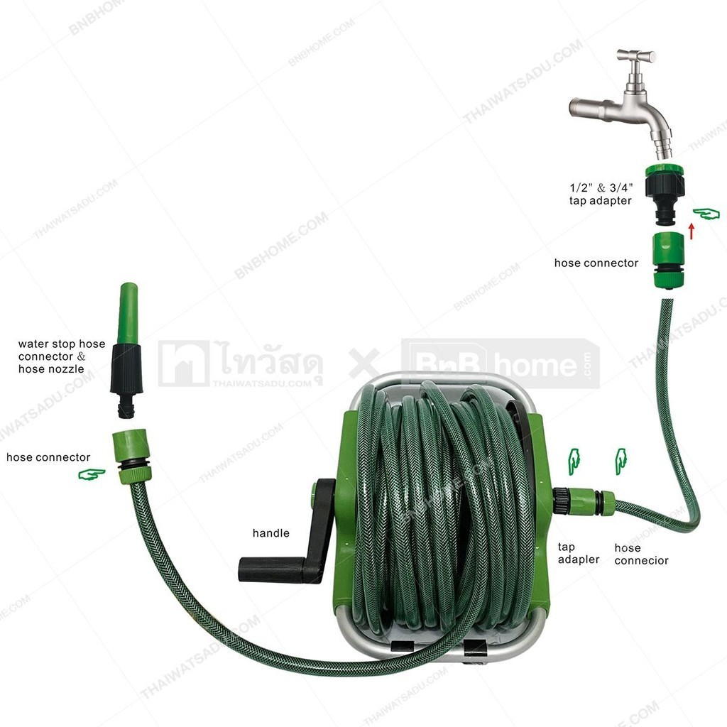 - แก้ปัญหาการพันกันของสายยางได้ดีด้วยการพัน หรือม้วนเก็บเข้าโรล