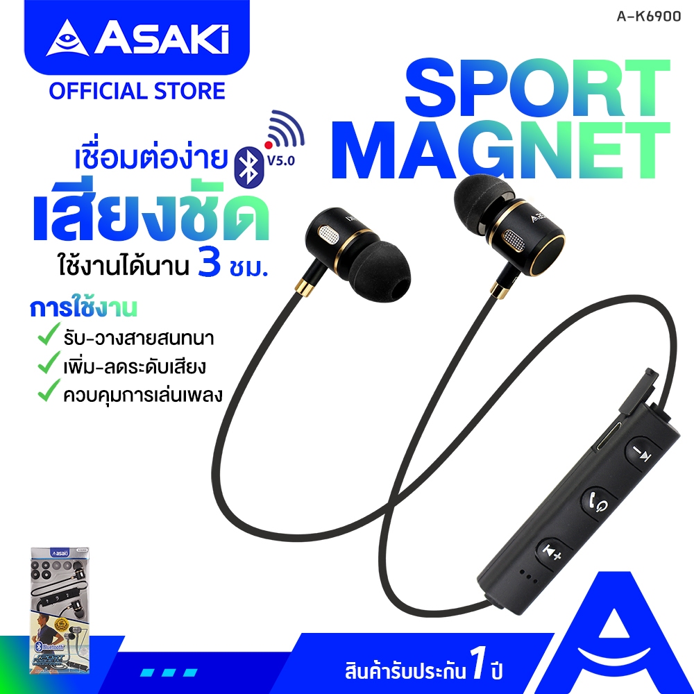 - Asaki Bluetooth Earphone หูฟังอินเอียร์บลูทูธ รุ่น A-K6660