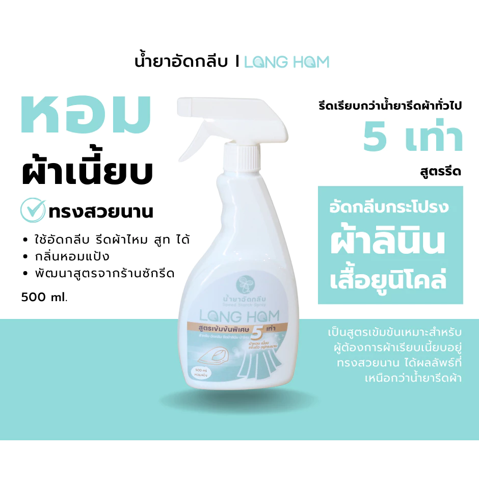 - Long Hom น้ำยารีดผ้าเรียบ สำหรับผ้ารีดยาก คืนตัวง่าย กลิ่นหอมแป้ง
