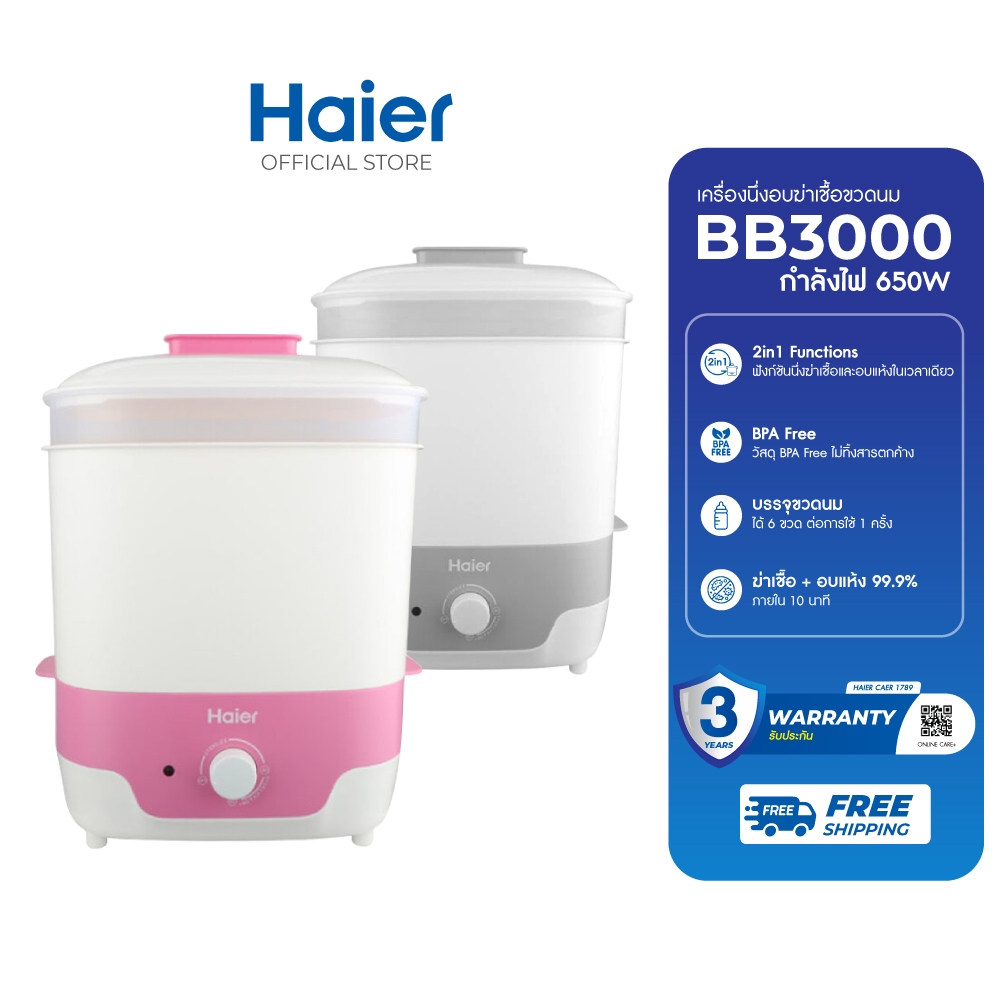 - Haier เครื่องนึ่งอบฆ่าเชื้อขวดนม รุ่น BB3000-GS