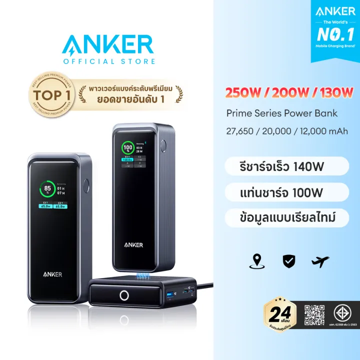 - Anker 723 Prime Power Bank 130W 200W 250W แบตสำรอง ชาร์จเร็ว