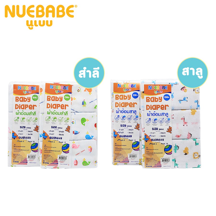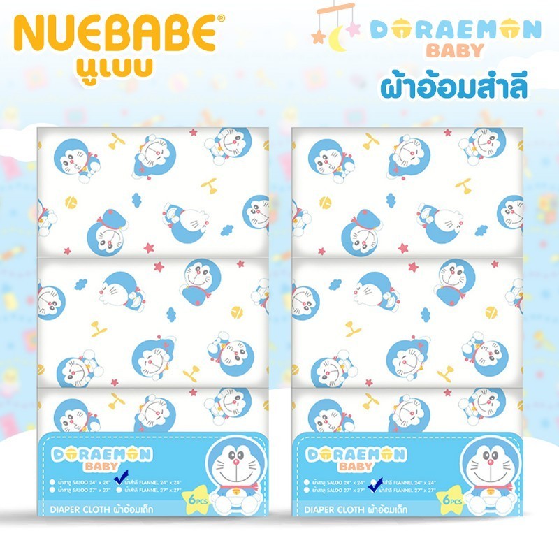 - Nuebabe ผ้าอ้อมสาลู แพ็ก 6 ชิ้น โดราเอมอน ลิขสิทธิ์แท้