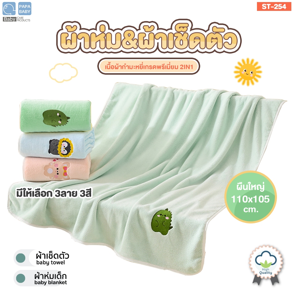 - ใช้เช็ดตัวลูก เผื่อต้องอาบน้ำนอกบ้านหรือไปว่ายน้ำ