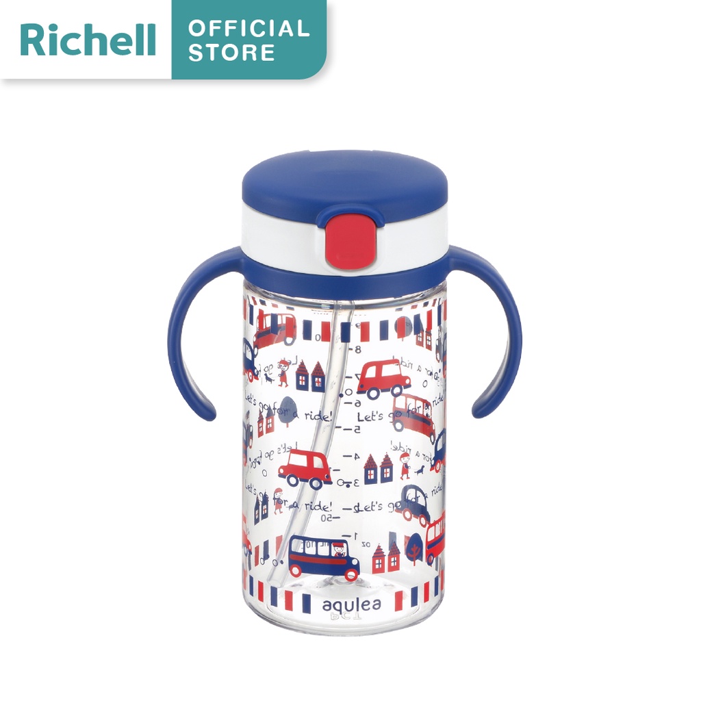 10.Richell(ริเชล) แก้วหลอดดูดกันสำลัก มีซิลิโคนรองแก้ว รุ่นAQ- Aqulea