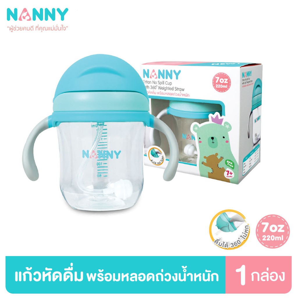 - Nanny แก้วน้ำ Tritan แก้วหัดดื่ม พร้อมหลอด ขนาด 7 ออนซ์ มี BPA Free
