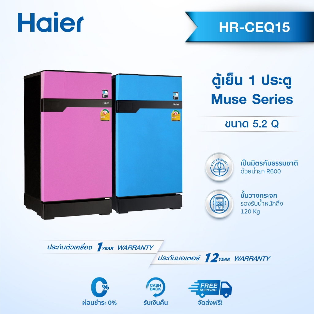 - ตู้เย็นเล็ก Haier รุ่น HR-CEQ15X ขนาด 5.2 คิว