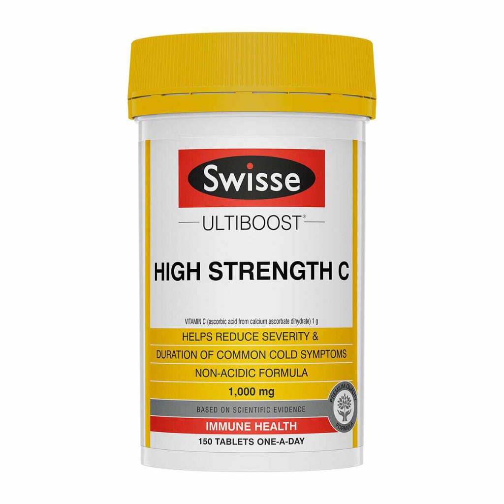 - Swisse Ultiboost High Strength C ประกอบด้วย วิตามิน ซี สูตรไม่เป็นกรด (calcium ascorbate) อ่อนโยนต่อระบบการย่อย