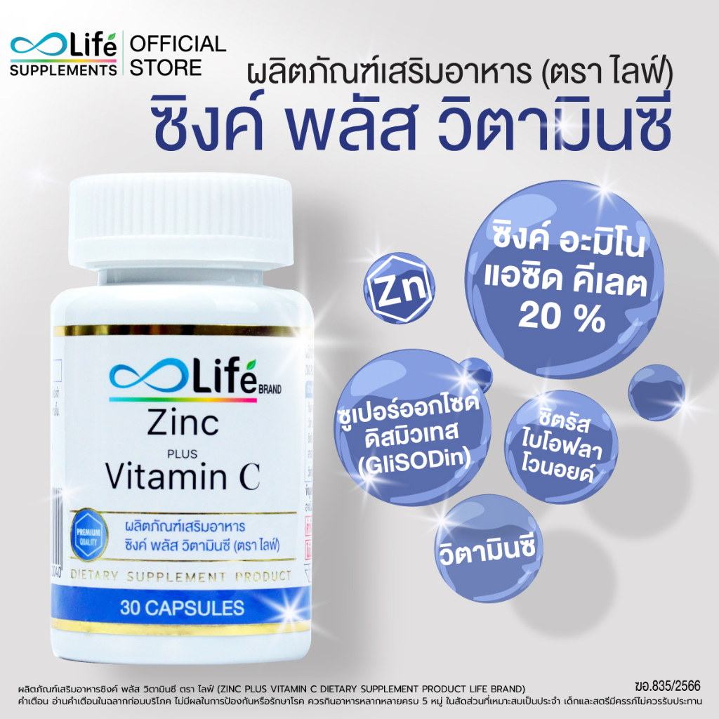 - ไลฟ์ ซิงค์ พลัส วิตามินซี Life Zinc Plus Vitaminc วิตามินบำรุงผม